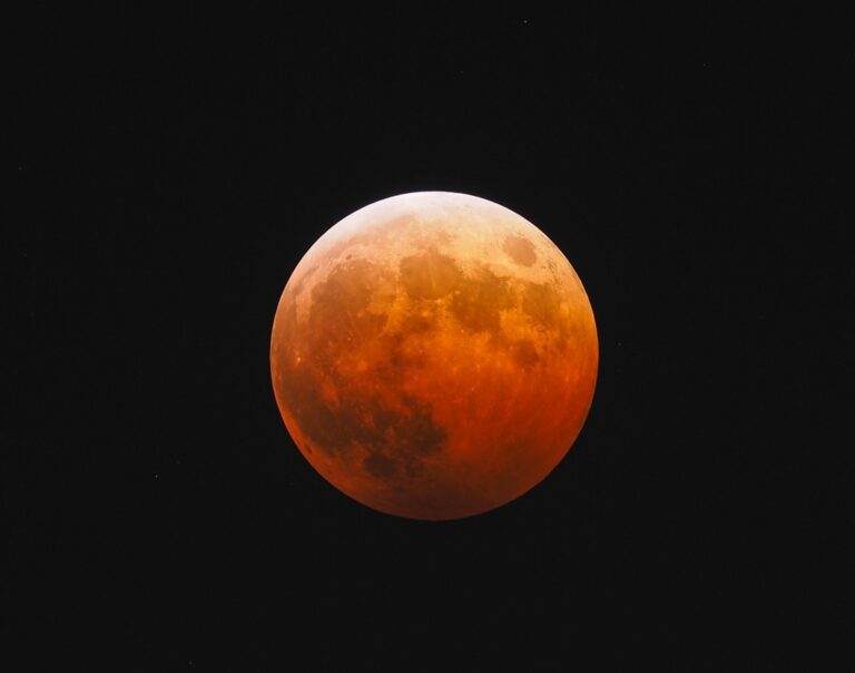 皆既月食で皆既中の赤黒いブラッドムーン「血の月」は見ごたえがあります