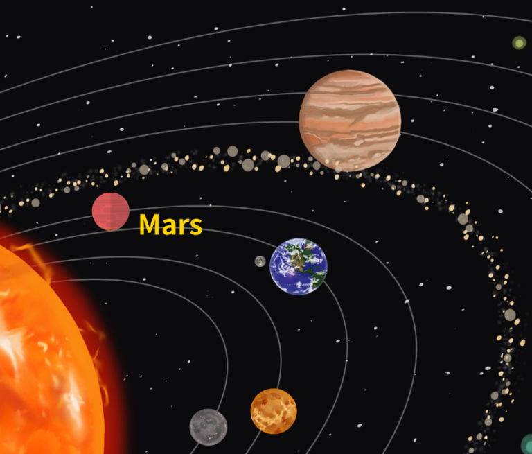 火星は太陽から4番目に近い惑星で、地球の直ぐ外側を周っています