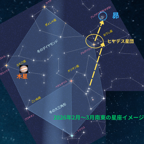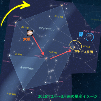 2026年冬のプレアデス星団(すばる)の見つけ方